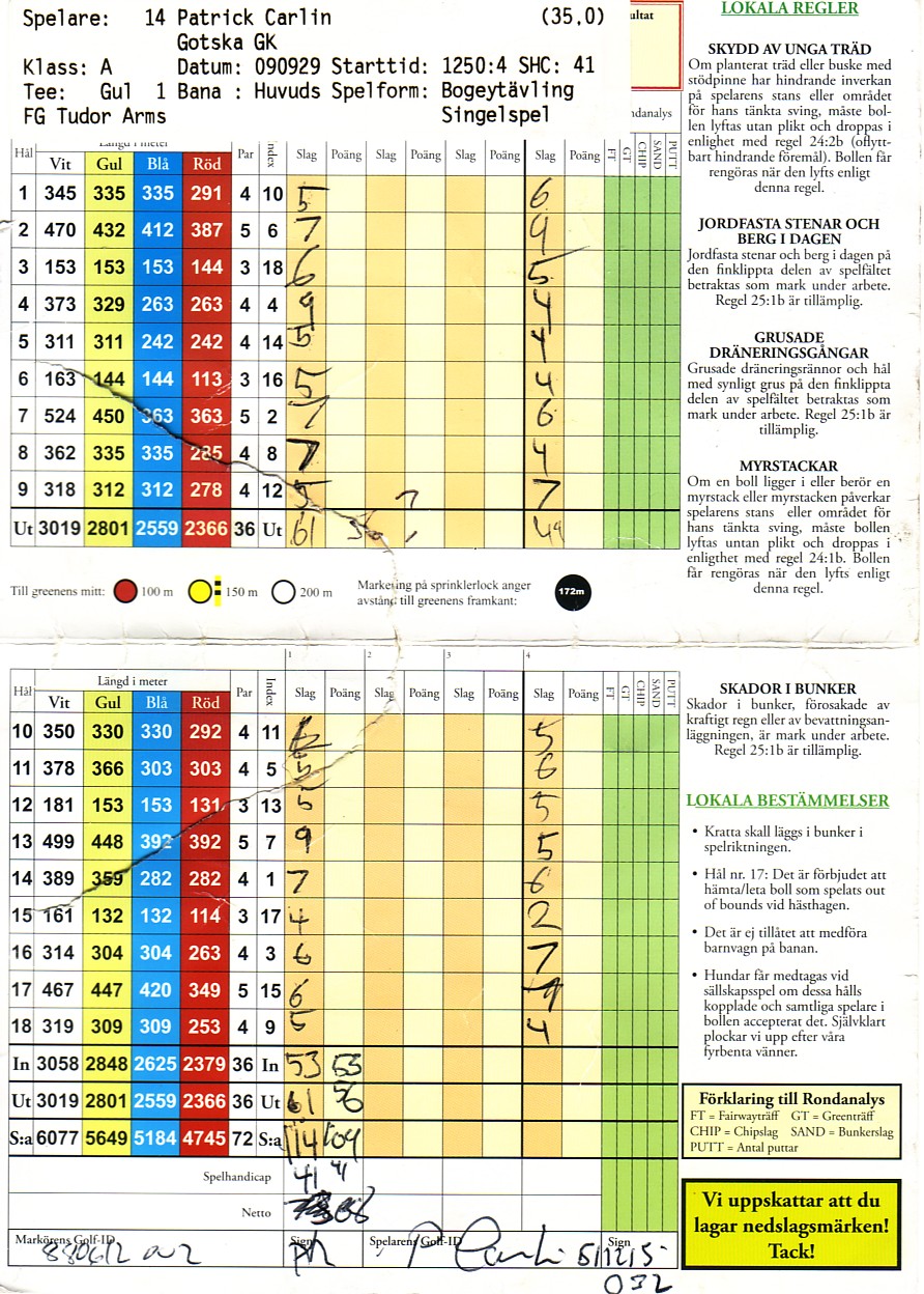 WINNER 2009.......PAT CARLIN net 68